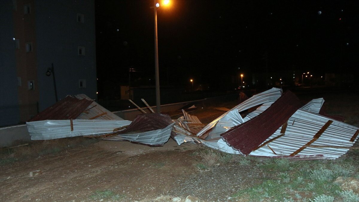 Ulu Cami mevkisinde de bir apartmanın çatısından kopan sac parçaları yola savruldu.