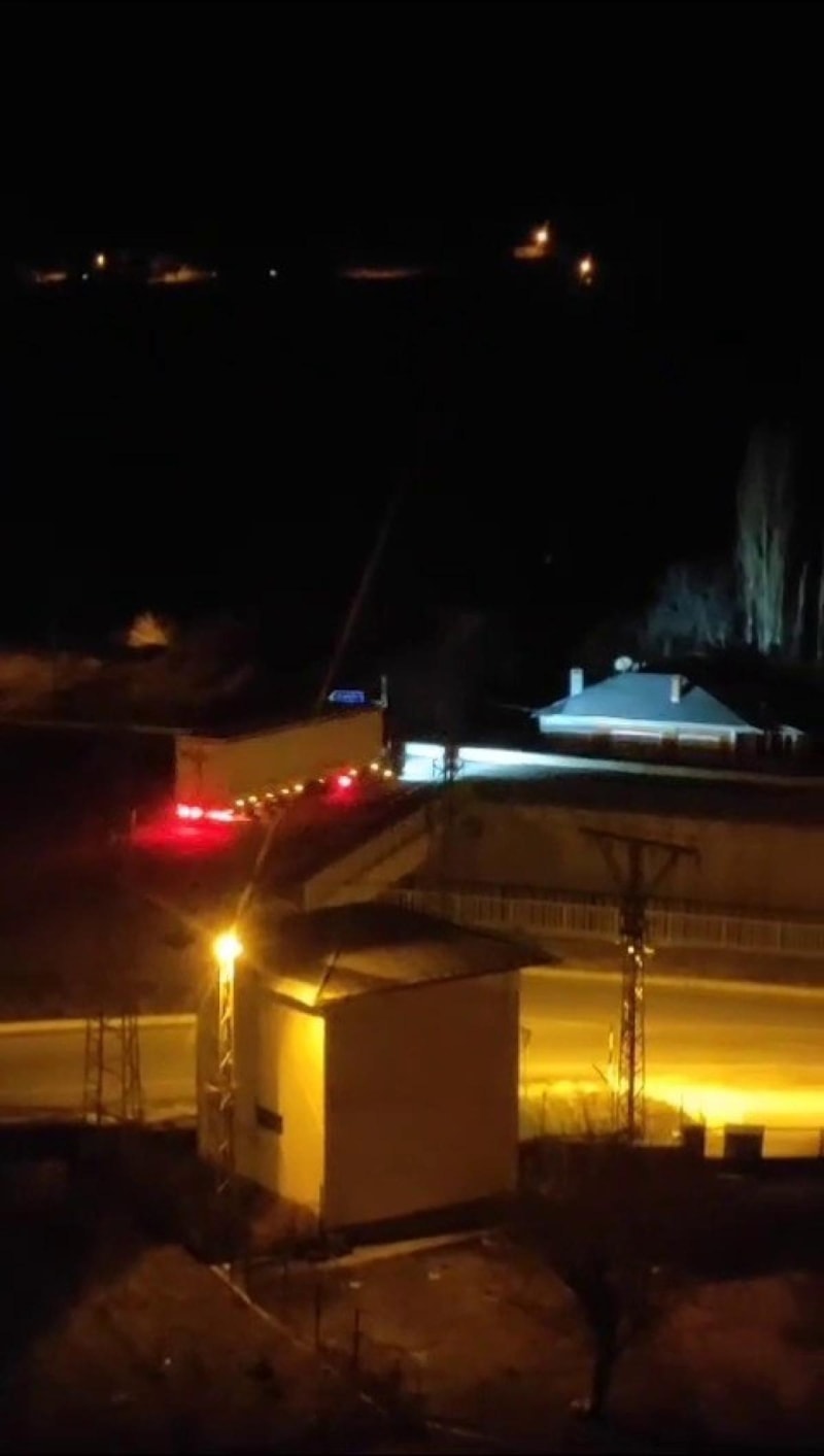 Koyulhisar ilçesinde tırın evin ikinci katına çarpmasıyla meydana gelen kaza anı, cep telefonu kamerasına yansıdı. Aynı eve daha önce 5 kez daha araç çarptığı öğrenildi.