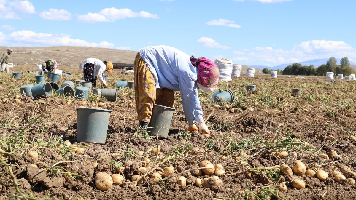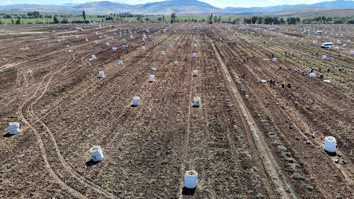 Burada yaklaşık 3 bin 500 dekar üretim alanımız var. Şu anda yerli çeşitlerimizin tohumluk hasadına başlamış bulunmaktayız. Ortalama olarak yaklaşık 4 bin kilo civarında bir verim aldık. Patates dikimlerimiz nisan ayı ortalarında başlıyor. Eylül sonu gibi de hasat etmeye başlıyoruz. Hasat ekim ayının ortasında kadar sürecek. Hasadını yaptığımız tohumluk patateslerin hepsi yerli çeşitler. Bu tohumların tamamı yurtiçinde geliştirilen çeşitler. Bu patatesler sanayilik yüksek verimli, hastalıklara dayanıklı verimli çeşitler.