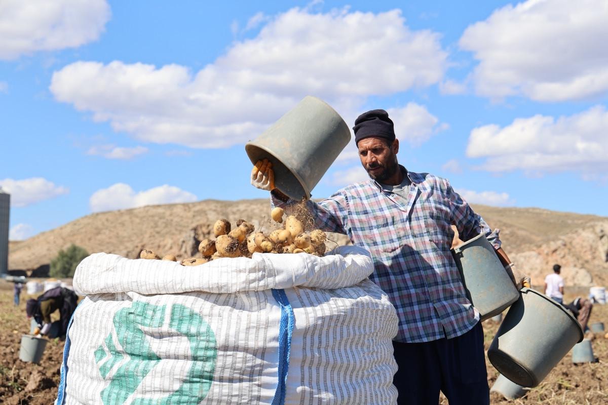 Sivas'ta patates hasadının yaklaşık iki hafta süreceğini belirten mevsimlik işçi Mahmut Dikeç şöyle devam etti: