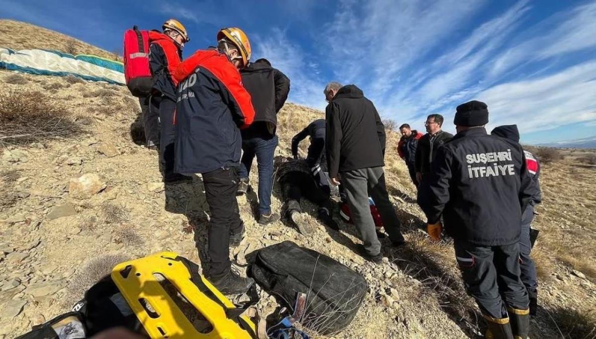 Sivas'ın Suşehri ilçesine bağlı Çakırlı köyü yakınlarında arkadaşlarıyla birlikte yamaç paraşütü yapmak isteyen S.Ü., havalandıktan kısa bir süre sonra ters rüzgara kapılarak 20 metre yükseklikten yere çakıldı.