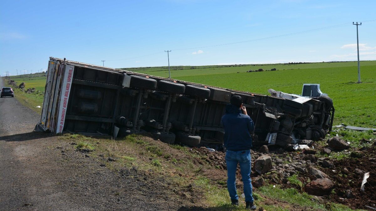 Diyarbakır yönüne giden Onur Koç yönetimindeki 80 BE 797 plakalı deterjan yüklü TIR, sürücüsünün kontrolünden çıkarak şarampole devrildi.
