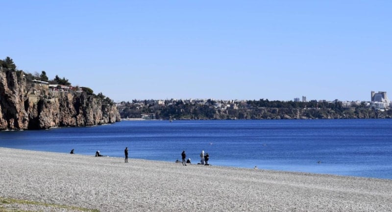 Hafta sonları yoğunluk yaşanan Konyaaltı Sahili, güneşli havaya rağmen pazar günü beklenen kalabalığı görmedi.