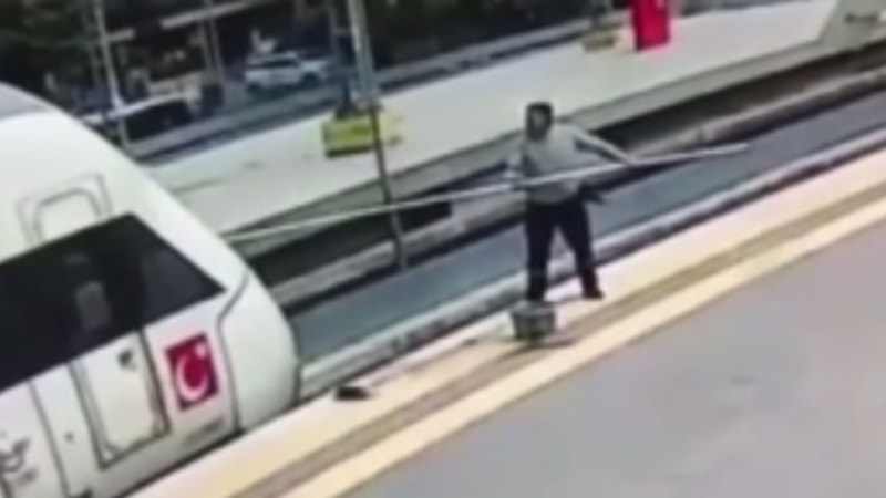 Tren istasyonunda, temizlik yaparken elindeki sopa yüksek gerilimli kabloya temas eden işçi, elektrik akımına kapıldı. Yaralanan işçi hastaneye kaldırıldı. Korku dolu anlar, güvenlik kamerasına yansıdı.