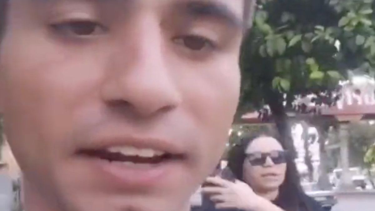 O sırada arkadan yürüyen bir kadın ise gencin kendisini kaydettiğini düşünerek "O kamerayı kapat." uyarısında bulunuyor.