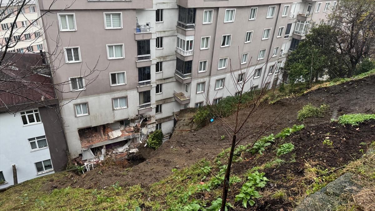 Yamaçtan kopan toprak kütleleri, bitişik 2 apartmanın giriş katlarındaki dairelere doldu. İhbar üzerine adrese AFAD, itfaiye ve sağlık ekibi sevk edildi.