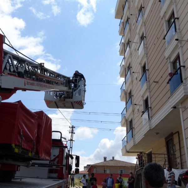 Yanında telefonu bulunmayan kadının sesini duyan komşular, durumu itfaiyeye ve baba Nihat C.’ye bildirdi. Olay yerine polis ekipleri ve itfaiyenin merdiven aracı sevk edildi. 6 katlı binanın 6'ncı katındaki dairede mahsur kalan kadını kurtarmak için itfaiye ekipleri, merdiven ile ulaştığı evin balkonundan içeri girdi.