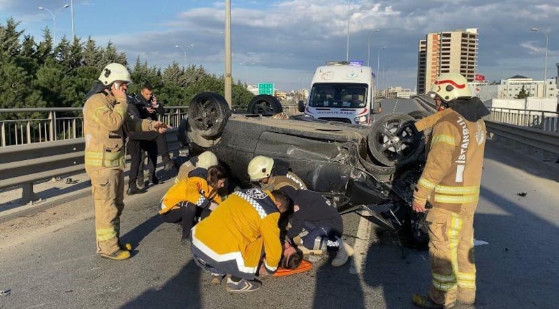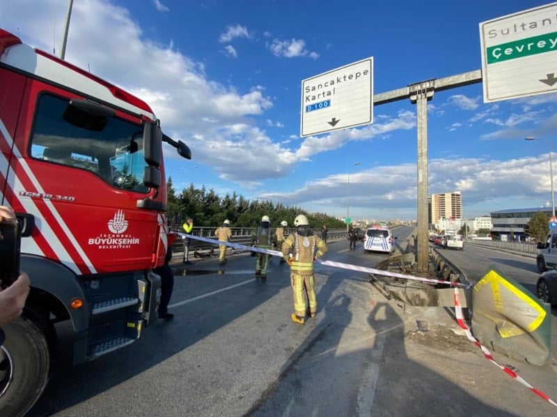 Sancaktepe-Kartal yol ayrımında direksiyon hakimiyetini kaybeden Toprak, bariyerlere çarptı.