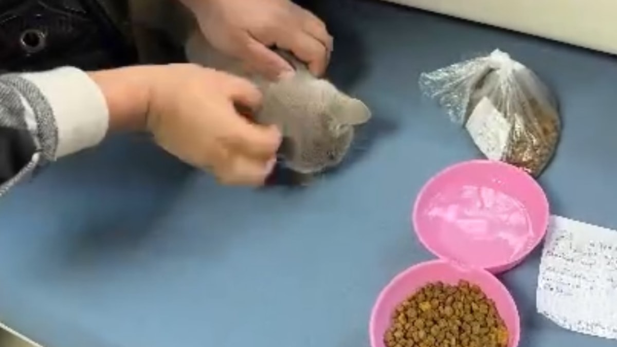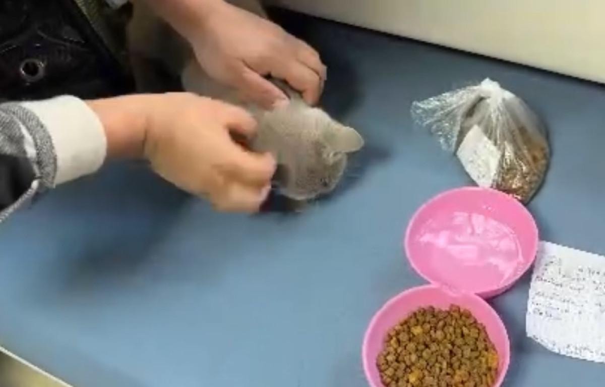 İstanbul Sultanbeyli'de, bir kadın ofisin önüne çantasının içinde terkedilmiş yavru bir kedi bıraktı.