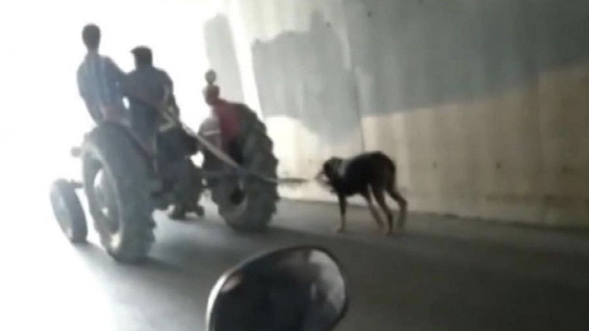DHA'nın haberine göre; traktörde bulunanlar uyarılara aldırmadan yoluna devam ederken, traktörün hızına yetişmeye çalışan köpeğin durumu yürek burktu. Uzun süre köpeği böyle çekerek ilerleyen traktör, bir süre sonra gözden kayboldu. O anlar cep telefonu kamerası tarafından kaydedildi.