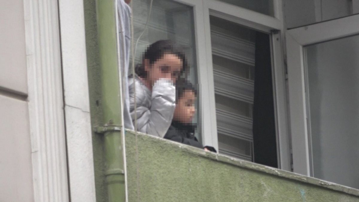 Rehin alınan anne ve çocuklarının balkona çıktıkları ve korktukları görüldü. Mahalle sakinleri de pencerelerine çıkarak olan biteni izledi.