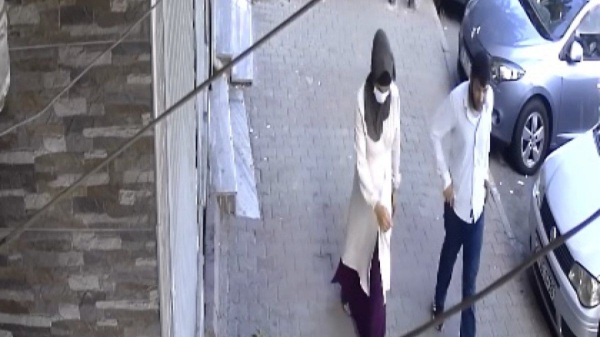 Esentepe Mahallesi'nde de bir iş yerine girerek cep telefon çalan kadının koşup çıktığı ve kendisini bekleyen kişinin yanına gittiği de görülüyor.