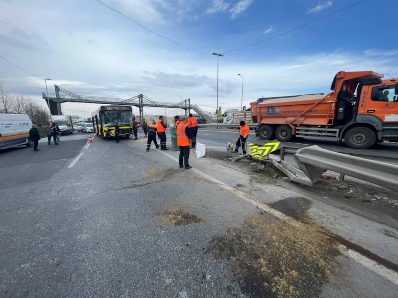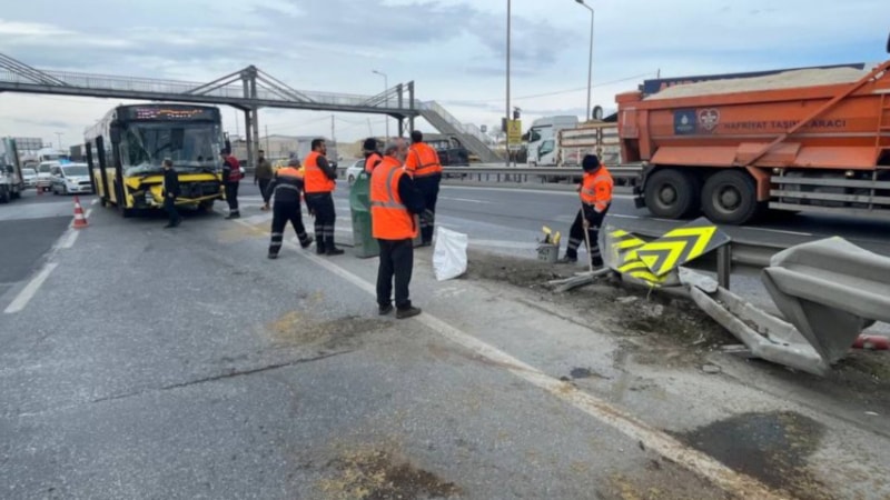 Seyir halindeki otobüs, direksiyon hakimiyetini kaybederek bariyerlere çarptı. Bölgede ekiplerin incelemeleri devam ediyor.