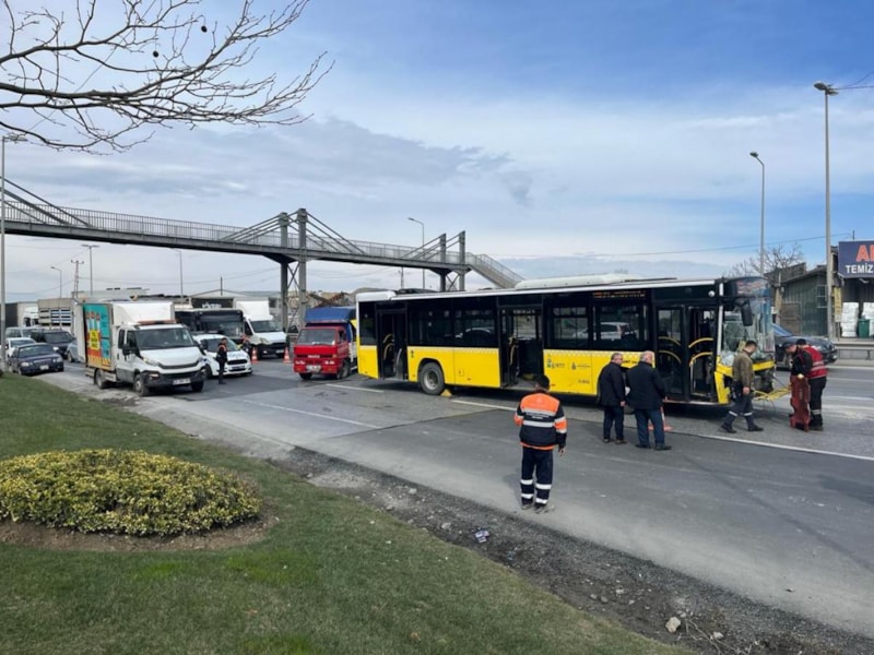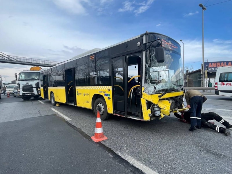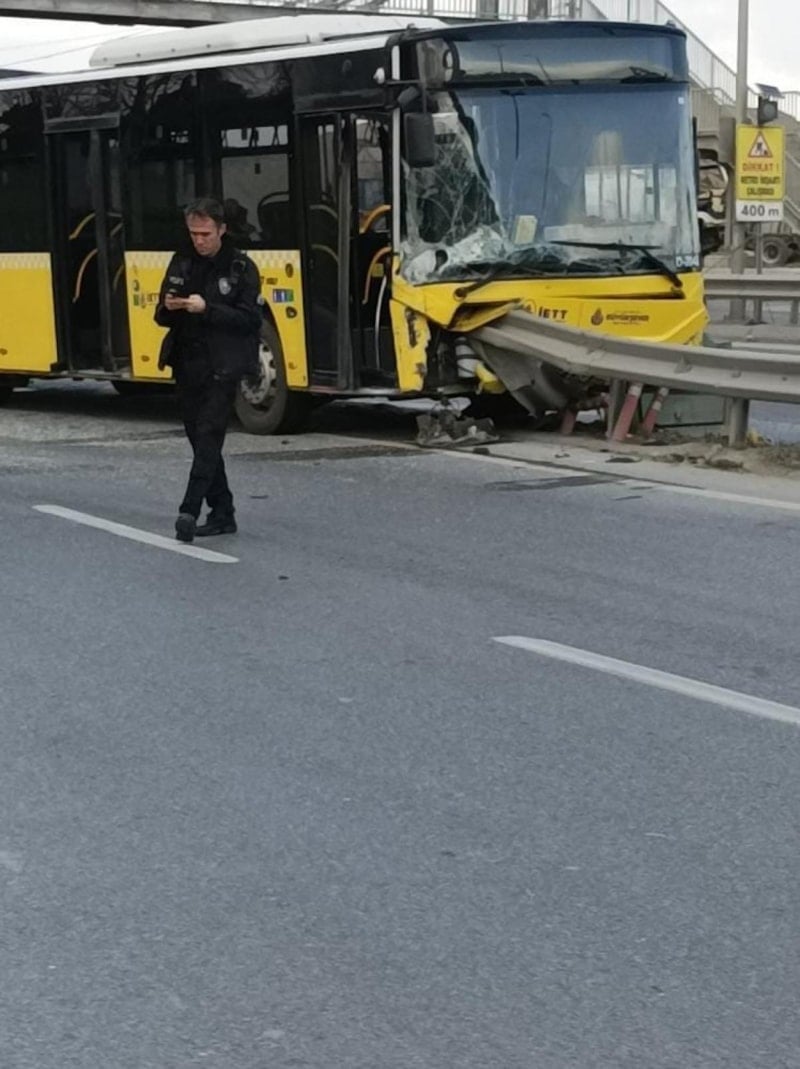 Sıkışan araçlar birbirine çarparken çarpmanın etkisiyle İETT otobüsü bariyerlere saplandı.