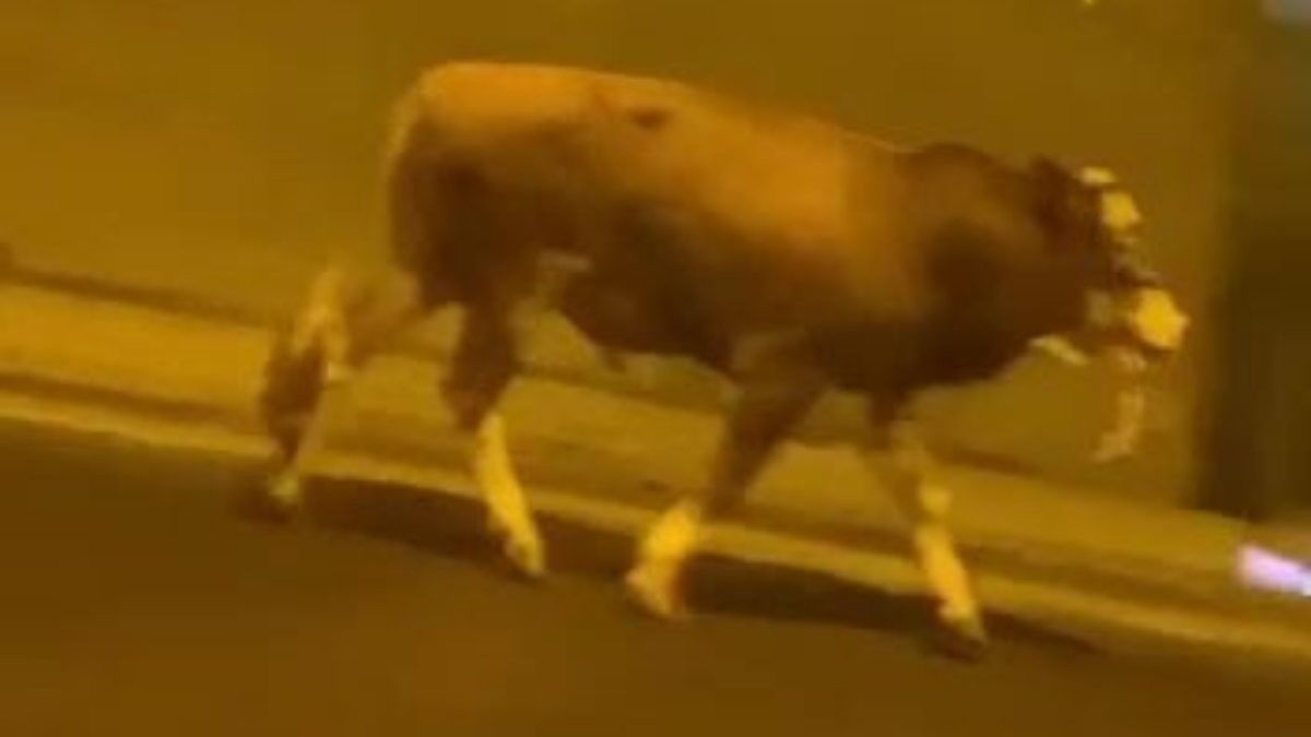 Sakin bir şekilde hiç bir şey olmamış gibi sol şeritten ilerleyen boğanın o görüntüleri ise bir vatandaşın cep telefonu kamerası ile kaydedildi.