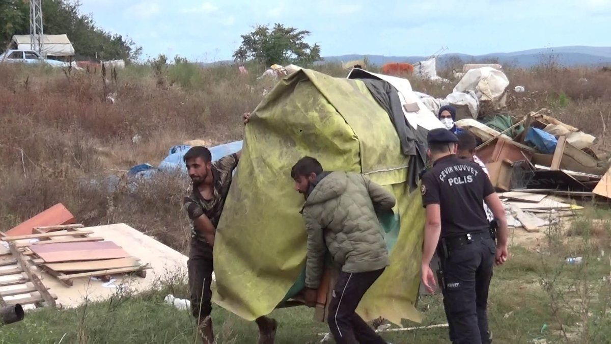 Bölgeye gelen belediyeye bağlı ekipler, barakaları kaldırmak için çalışma başlattı.