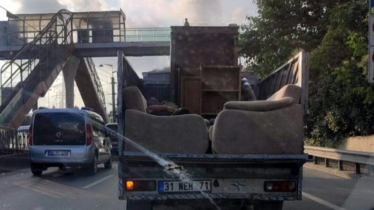 İstanbul’un Sultangazi ilçesi Habibler bağlantı yolunda seyir halinde olan bir kamyonetin kasasında, kanepede uzanan bir şahsın olduğu görüldü.
