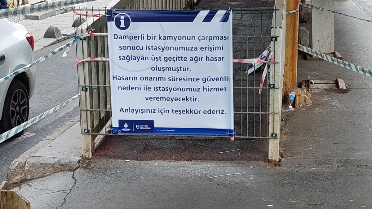 Kamyon şoförü damperin açıldığından habersiz ilerlemeye devam ederken bir süre sonra kamyon damperi, Baştabya Tramvay İstasyonu’nun yaya üst geçidine çarptı.