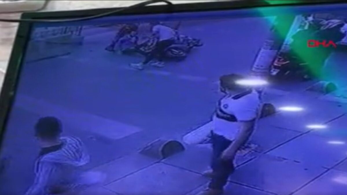 Karşıya geçmeye çalışan yayaya çarpan ters yöndeki motosikletin görüntüleri, anbean güvenlik kamerasına yansıdı.