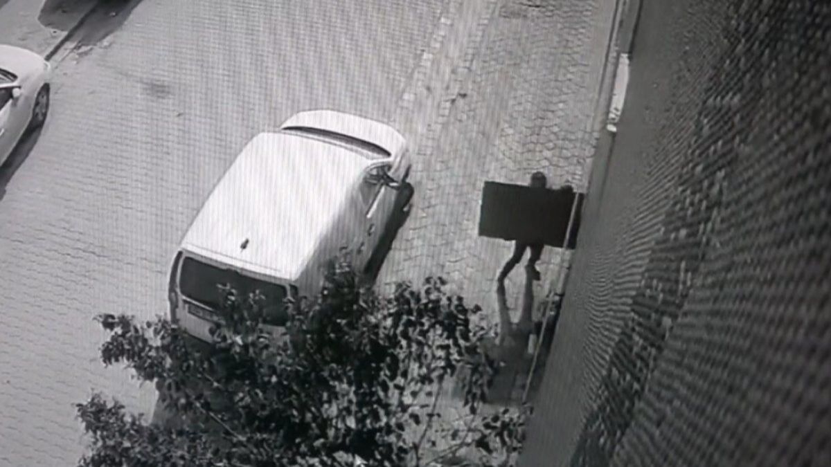 Pazartesi günü işbaşı yaptığımızda demir kapının yerinde olmadığını gördük. Kamera görüntülerini izlediğimizde bir kişi, yaklaşık 70 kilo ağırlığındaki oldukça ağır demir kapıyı söküp götürüyor. Arkadaş çok güçlü. Tek başına demir kapıyı sırtlıyor ve sendeleyerek sokaktan ayrılıyor. Biz de kaldırımda yürüyenlerin çukura düşmemesi için önlem amaçlı palet koyduk.”