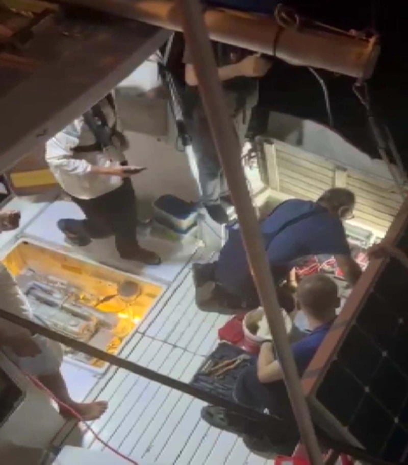 Gazze'ye yardım götüren Sumud Filosu'nda yer alan 'Adagio' teknesi, Yunanistan'a 50 mil kala arızalanınca irtibata geçtikleri Türk Donanması’na ait geminin yönlendirdiği Türk yük gemi personeli tamiri gerçekleştirdi.