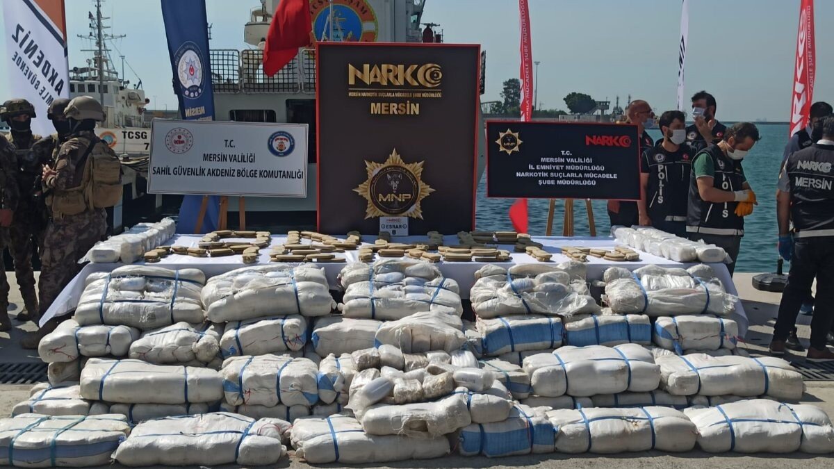 Ele geçirilen uyuşturucu, bugün Mersin’deki Sahil Güvenlik Akdeniz Bölge Komutanlığı’na getirildi. Burada sergilenen uyuşturucular, basın mensuplarınca görüntülendi.
