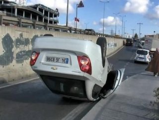 İstanbul Beylikdüzü'ndeki D-100 karayolu Haramidere Sanayi mevkii Avcılar yönünde süratle seyreden bir otomobil, sürücüsünün direksiyon hakimiyetini kaybetmesiyle yol kenarındaki bariyerlere çarptı.