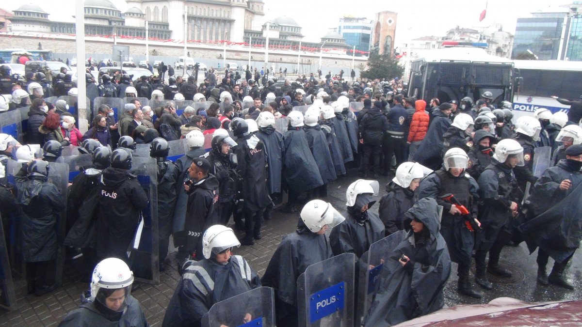 Taksim'de izinsiz basın açıklaması yapmak isteyen gruba polis müdahalesi ViDEO