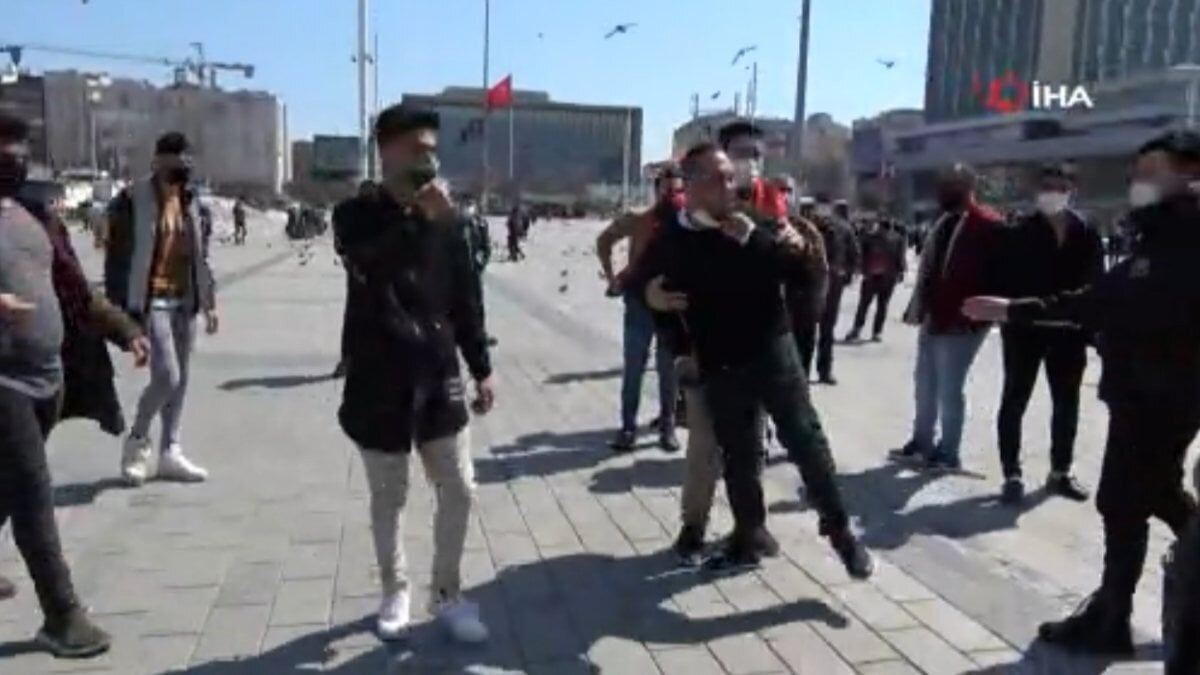 Taksim’de saat 12.30 sıralarında çekim yapan bir gazeteci ile seyyar satıcılar arasında tartışma çıktı.