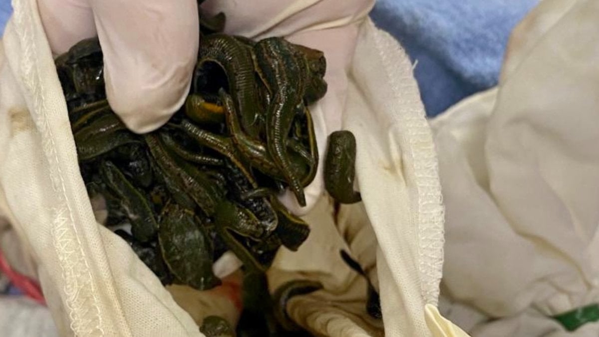 İstanbul Havalimanı'nda su ürünleri kontrol görevlilerince dün gerçekleştirilen denetimlerde, yolcuya ait valiz içerisinde kaçak yollarla ülkeye sokulmak istenen yaklaşık 12,2 kilogram ağırlığında, 90 bin canlı tıbbi sülüğün ele geçirildiği belirtilen paylaşımda şu ifadeler kullanıldı: