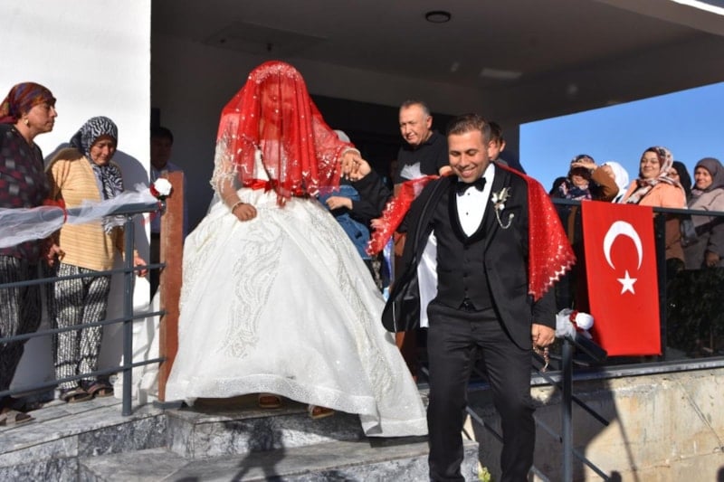 Gelin Aylin ve damat Gökhan Ünmek'in mutluluğu gözlerinden okunurken, Horasanlı Mahallesi sakinleri de bu özel günlerinde genç çifti yalnız bırakmadı.