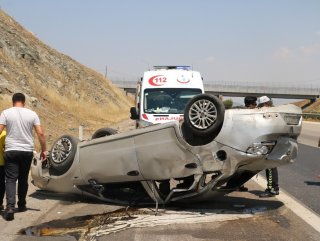 Gaziantep-Adana otobanında seyir halindeyken tekeri patlayan otomobil, takla attı. Araçta bulunan 8 kişi yaralandı.