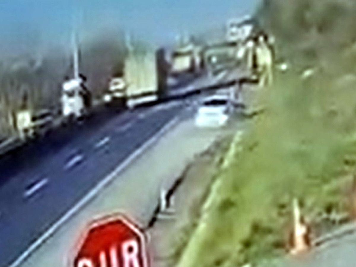 Kaza anı çevredeki bir iş yerinin güvenlik kamerasınca kayda alındı.