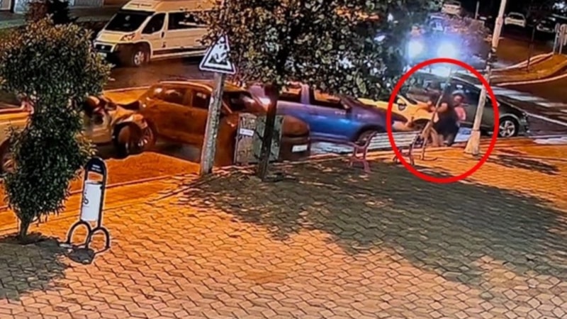 Öte yandan kameraya yansıyan görüntülerde, vatandaşın eşi ve bebeğiyle kaldırımda yürürken büyük tehlike atlatması dikkat çekti.