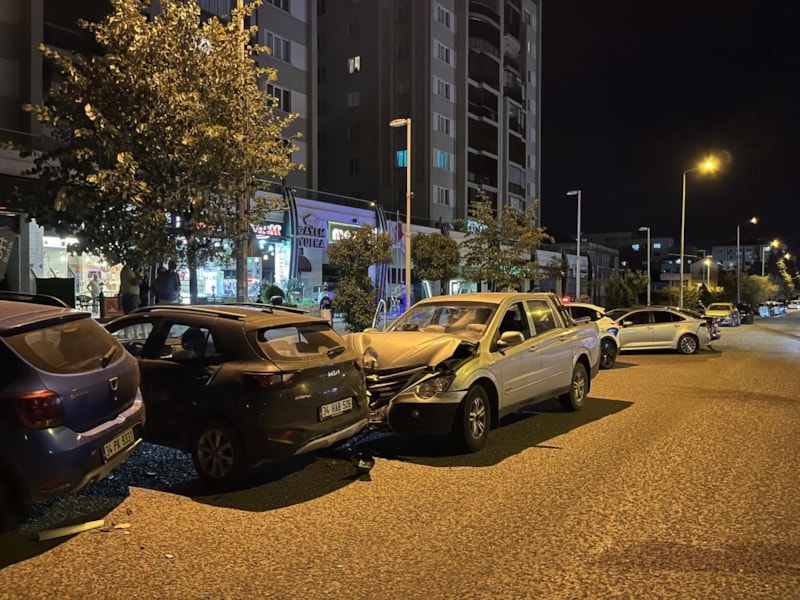Çamlıbel Caddesi istikametine seyreden B.T. idaresindeki pikap araç, sürücüsünün direksiyon hakimiyetini kaybetmesi sonucu yol kenarında park halinde bulunan 4 araca çarparak durabildi.