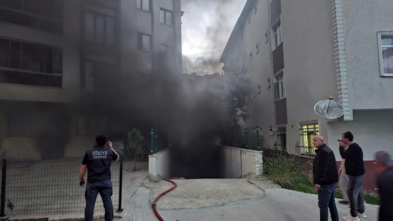 Çerkezköy ilçesinde bir apartmanın otoparkında meydana gelen patlama sonrası çıkan yangında, yoğun duman nedeniyle mahsur kalan 9 kişi itfaiye merdiveniyle tahliye edildi.