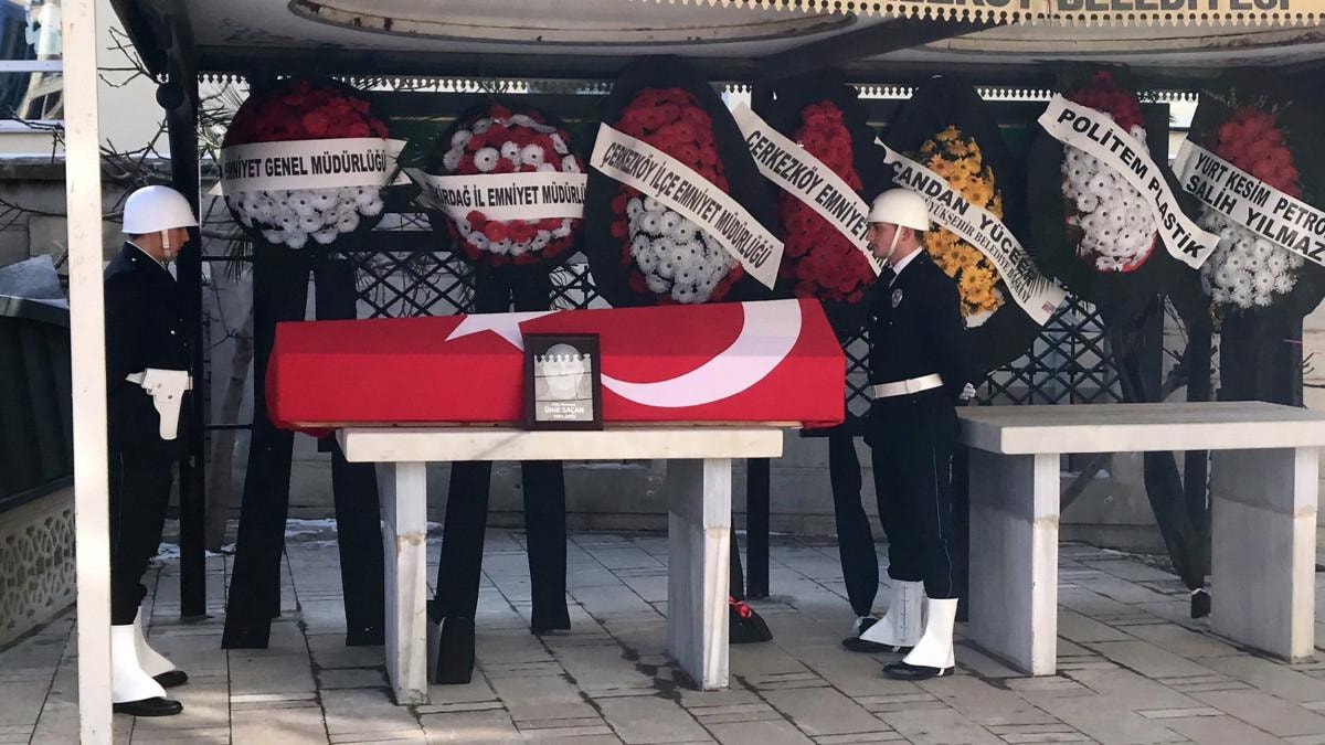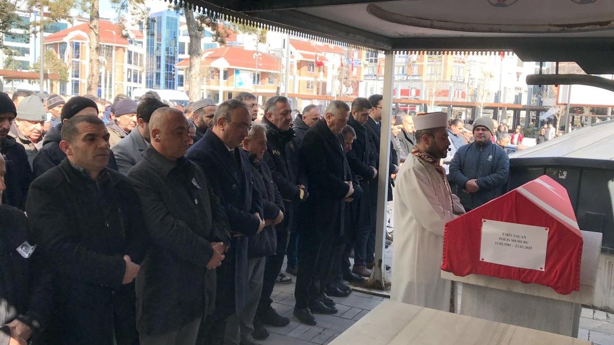 Evli ve bir çocuk babası Ümit Saçan için Çerkezköy İlçe Emniyet Müdürlüğü önünde tören düzenlendi.
