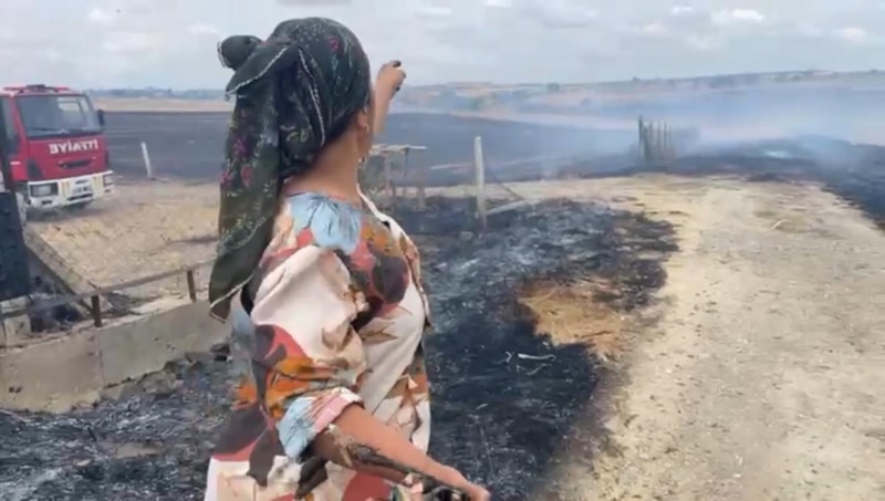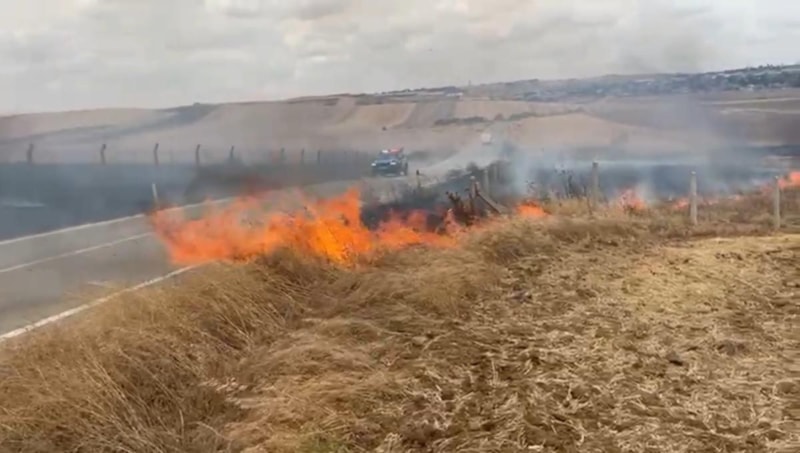 Türkmenli Mahallesi mevkiinde, öğle saatlerinde anız ve otluk alanda henüz belirlenemeyen nedenle yangın çıktı.