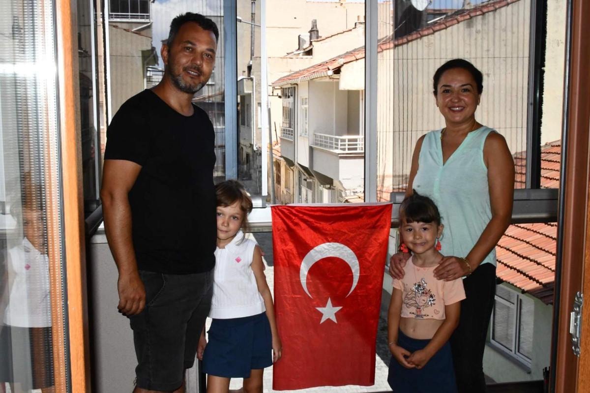 Çiftin kızlarından Nil de "Bayrağı çöpte gördük aldık yıkadık, ait olduğu yere astık. Bayrak bizim canımız, kanımızdır, ülkemiz için çok önemli." dedi.
