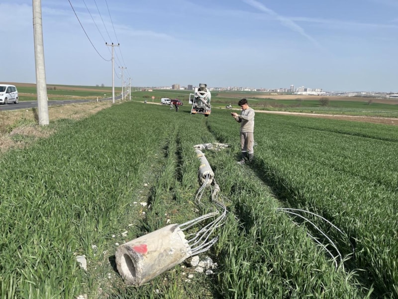 Beton elektrik direklerini yıkan mikser, ekili tarlaya girerek yaklaşık 150 metre sonra durabildi.