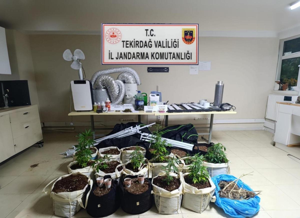 Tekirdağ İl Jandarma Komutanlığı ekipleri yaptıkları çalışmada, uyuşturucu madde imal ve ticareti yaptığını tespit ettiği T.A.'yı takibe aldı. Takip ardından Jandarma Suç Araştırma Timi (JASAT) ve Çorlu Yenice Karakol Komutanlığı ekipleri, T.A.'nın evine dedektör köpeğin de katılımıyla operasyon düzenledi.