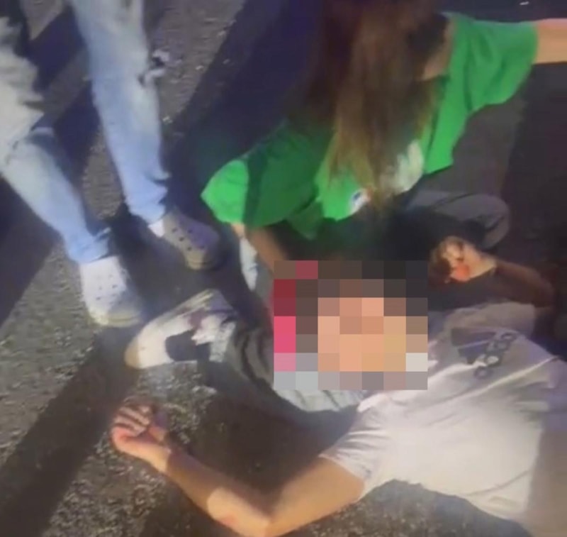Kaza alanında yaralılardan biri, ağır yaralı arkadaşının başını dizine koyarak sağlık ekiplerinin gelmesini bekledi.