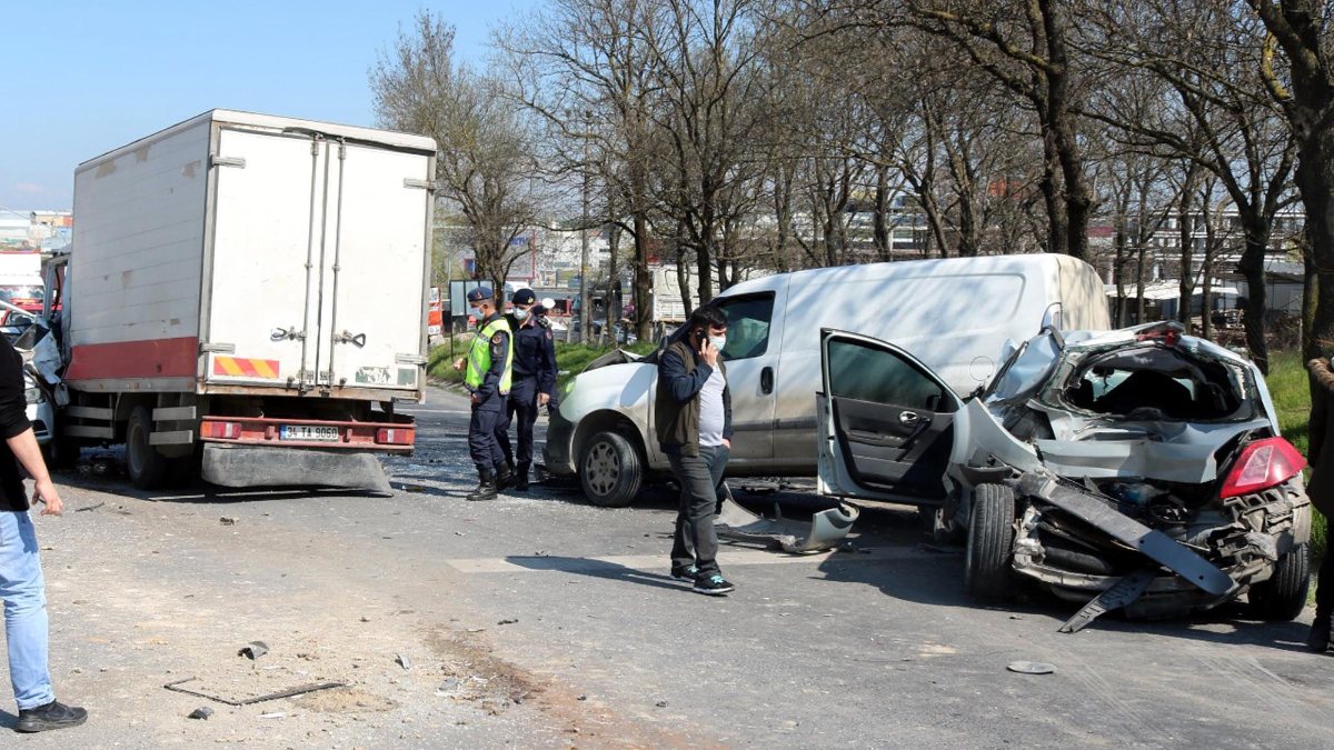 Kamyonet, seyir ve park halinde olan 3 otomobil, bir tanker ve bir hafif ticareti araca çarparak durdu.