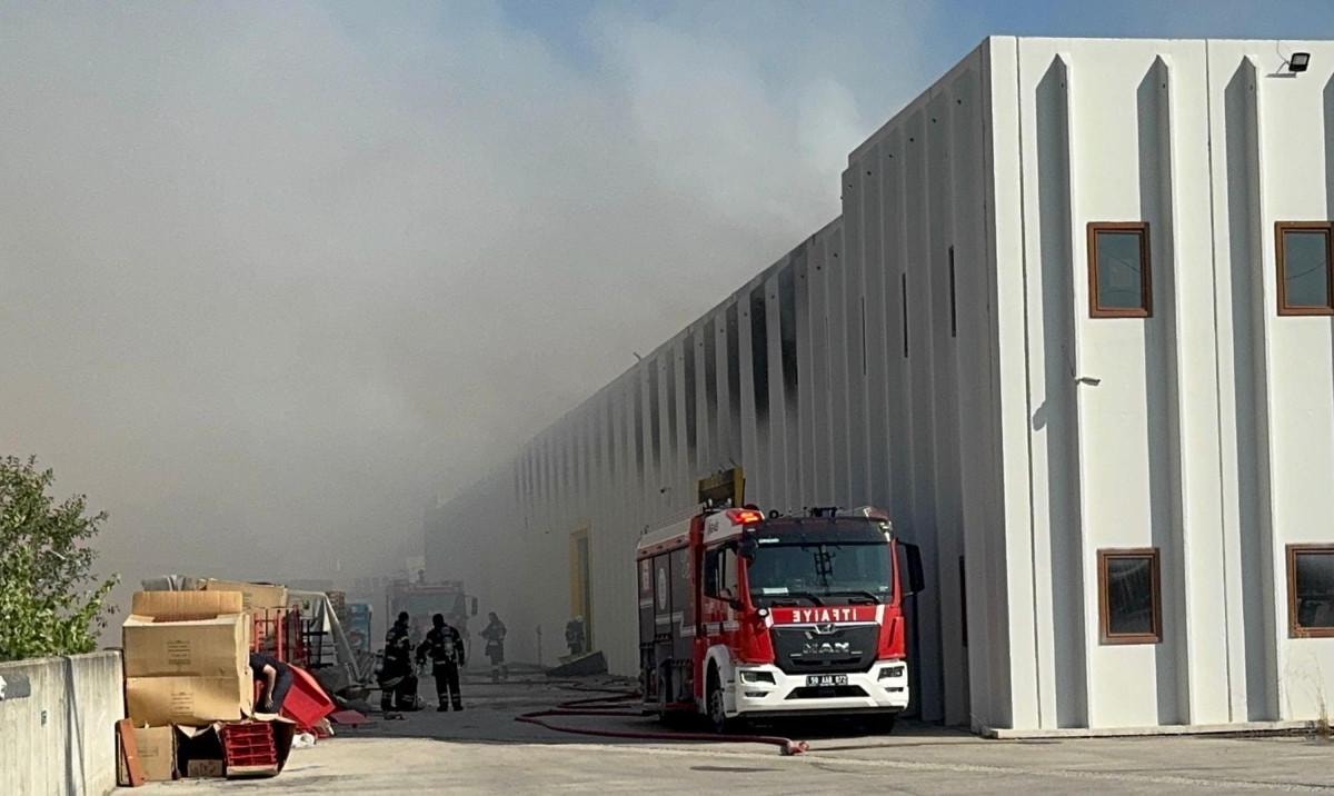 Tekirdağ'ın Ergene ilçesinde içerisinde istiflenmiş halde dondurma, cips ve kola gibi ürünlerin bulunduğu bir gıda deposunda, henüz belirlenemeyen bir nedenle yangın çıktı.