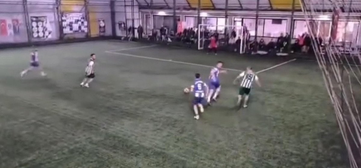 Yaşanan olay, halı sahanın güvenlik kamerasına yansıdı.