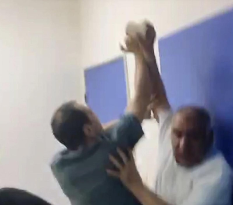 Çorlu Devlet Hastanesi'nde, Destek ve Kalite Hizmetleri Müdür Yardımcısı Cumali K. ile hastanede protez ortez teknikeri olan Halil İbrahim Kazankaya arasında yaşanan kavga, kameraya yansıdı.
