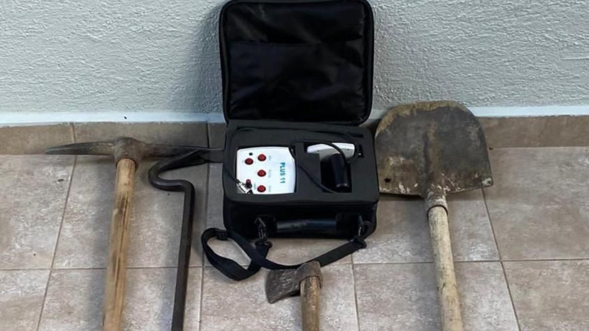 Kazıda kullanıldığı belirlenen dedektör, balta, manila, kazma ve küreğe el konuldu.