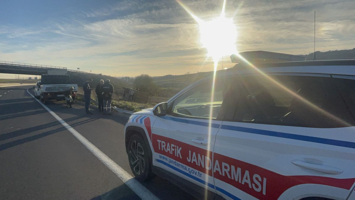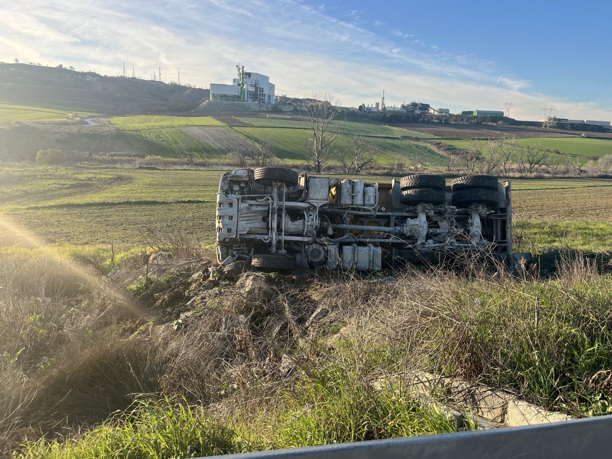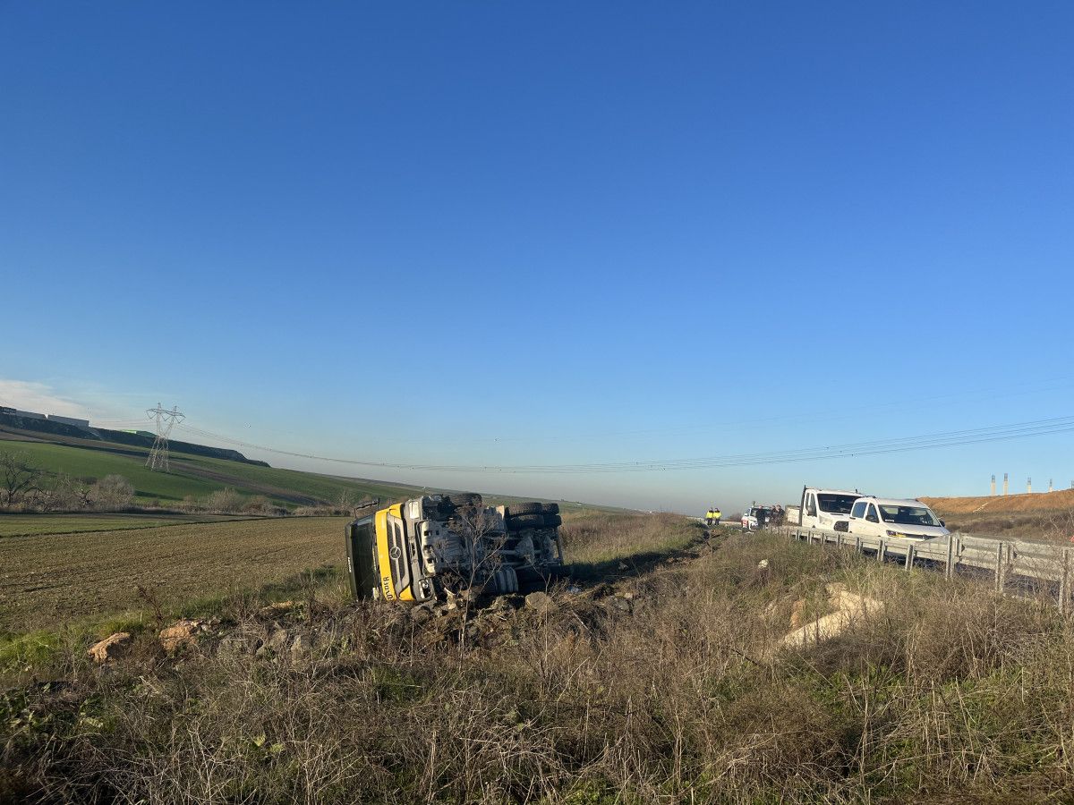 - Tekirdağ'da, kum yüklü kamyon bariyerlere çarparak tarlaya devrildi.