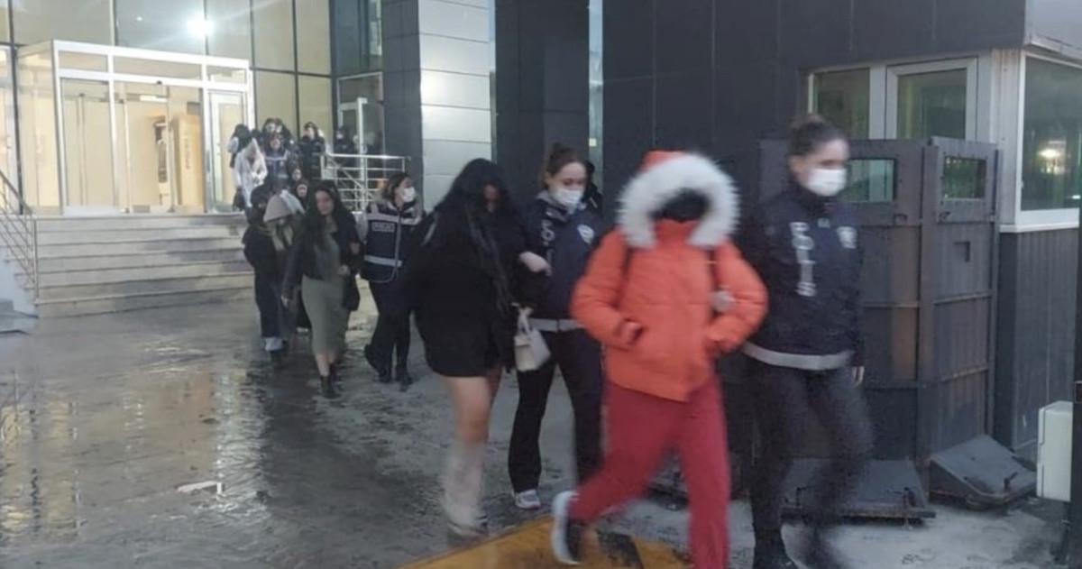 Para karşılığında fuhuş yaptığı değerlendirilen 25 kadın, gerekli işlemler için emniyet müdürlüğüne getirildi.