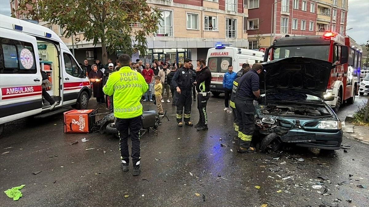 Tekirdağ'ın Çorlu ilçesi Eski Çerkezköy Caddesi'nde F.Ç. yönetimindeki motosiklet, karşı yönden gelen A.O. idaresindeki otomobil ile çarpıştı.